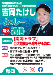 - 南海、東南海トラフ巨大地震対策は待ったなし。津波対策として安全の確保と円滑な避難の推進に向けて取り組みます。
